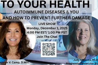 Join us today at 1pm PT/4pm ET for a special LIVE session via RUMBLE: TO YOUR HEALTH: AUTOIMMUNE DISEASE AND YOU with Dr. Judy Mikovits and…