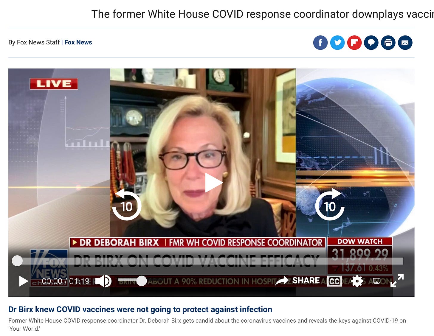 DR. BIRX: “I knew these vaccines were not going to protect against infection. And I think we overplayed the vaccines, and it made people then worry that it's not going to protect against severe disease and hospitalization.“