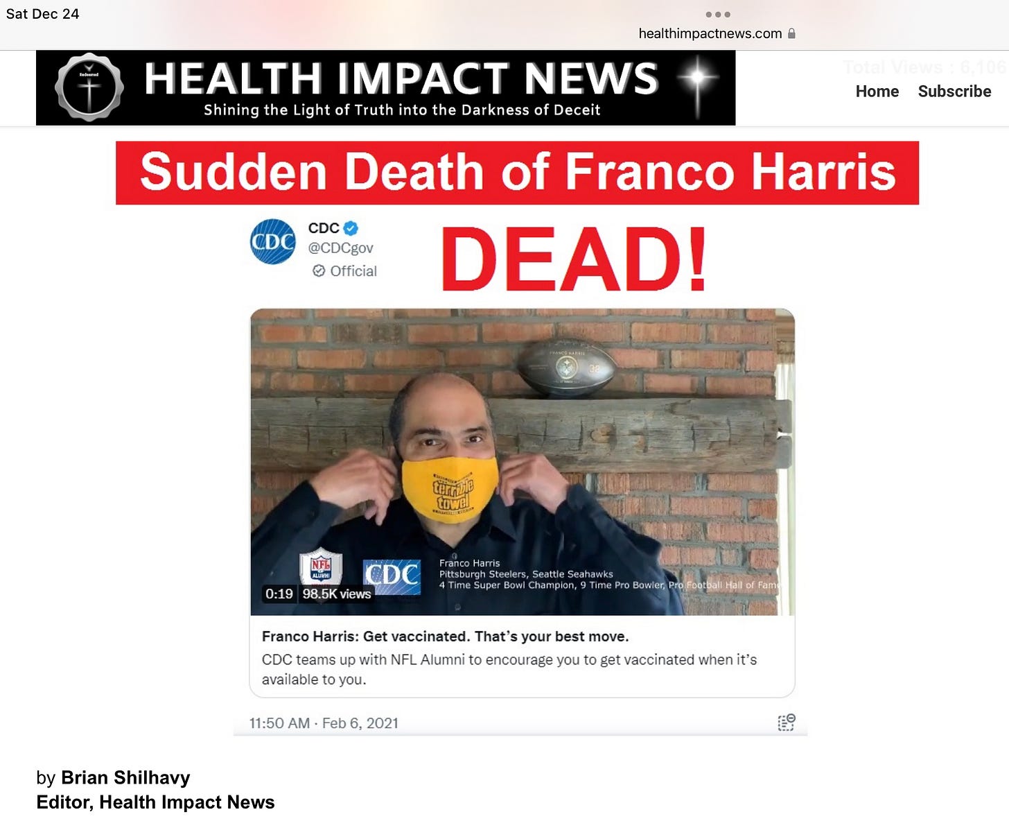 It is SAD that Franco Harris was such an advocate of all things God-given when it comes to food and nutrition and yet the medical industrial complex propagated their agenda of premeditated murder onto Harris, a revered member of his community, convincing him to influence those in his community to partake in this deadly medical experiment.
