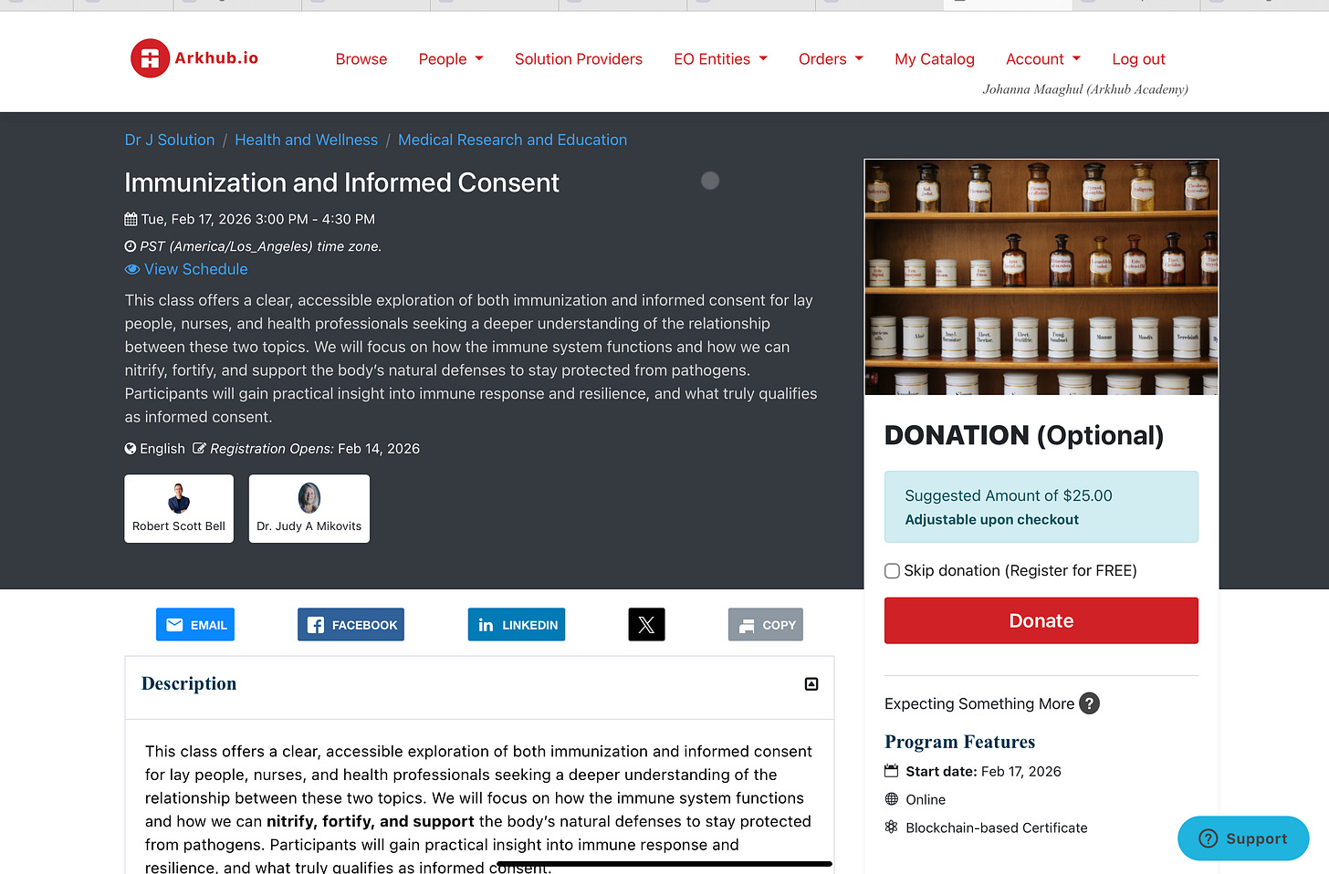 This class offers a clear, accessible exploration of immunization and informed consent for laypeople, nurses, and health professionals seeking a deeper understanding of the relationship between these two topics. We will focus on how the immune system functions and how we can nitrify, fortify, and support the body’s natural defenses to stay protected from pathogens. Participants will gain practical insight into immune response, resilience, and what truly qualifies as informed consent.